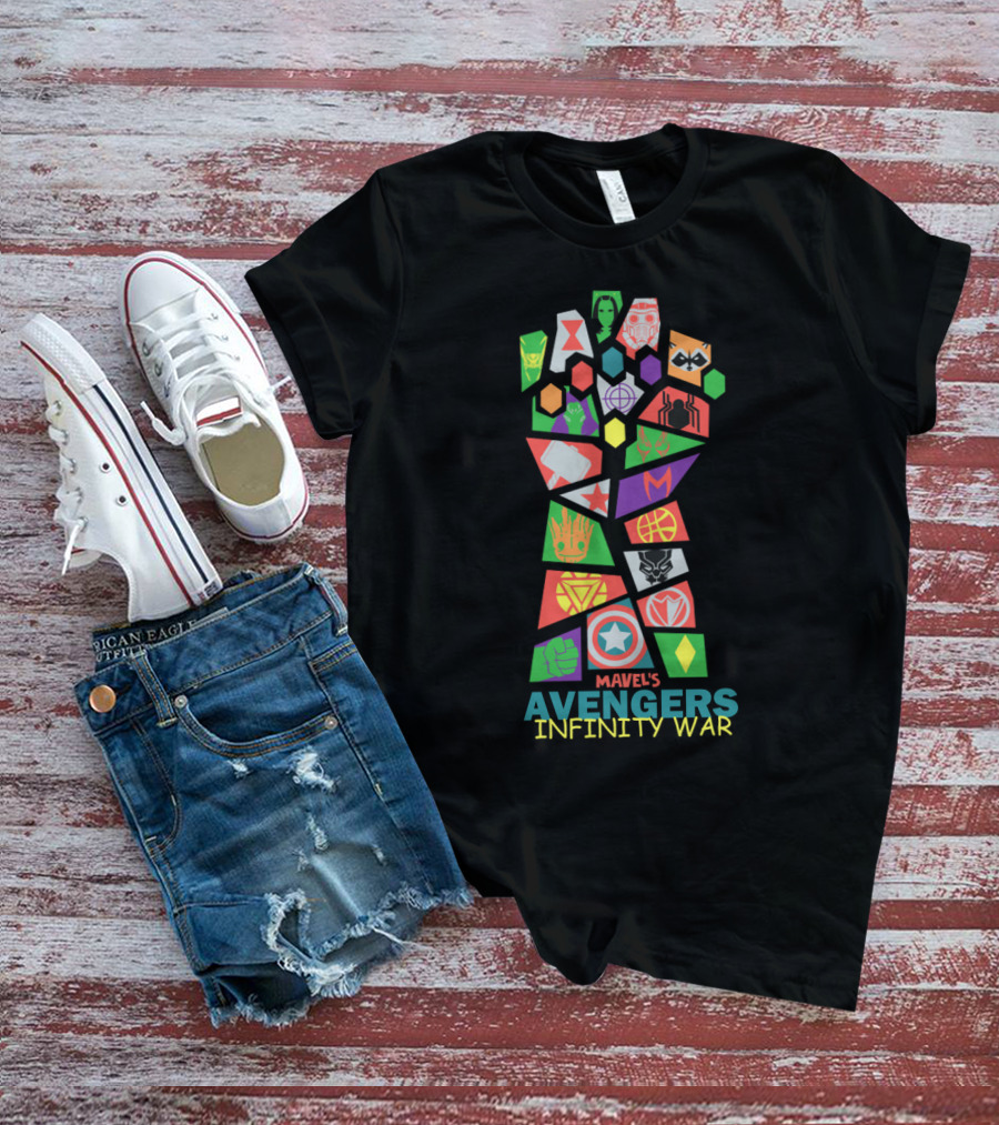 Marvel's Avengers Infinity War Colorful Gauntlet With Iconic Hero T-Shirt