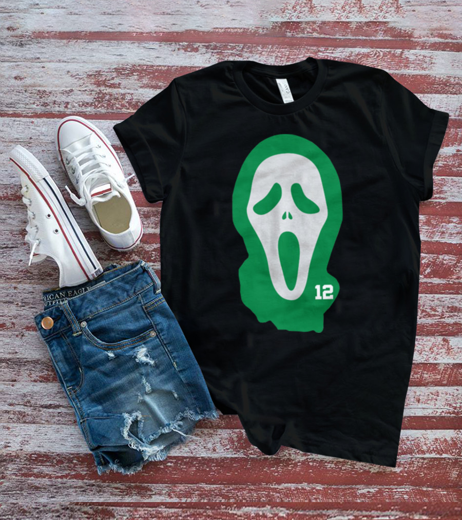 Basketball Team Scary Terry Rozier Scream Mask Number 12 Green T-Shirt