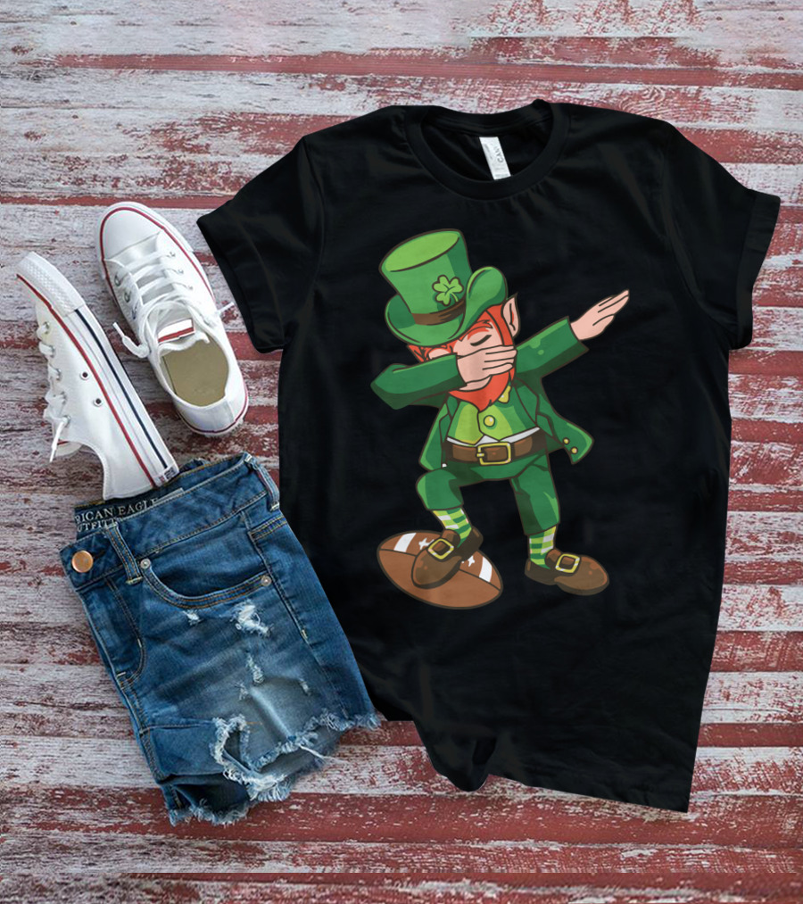 Leprechaun Dabbing On Football With Clover Hat T-Shirt