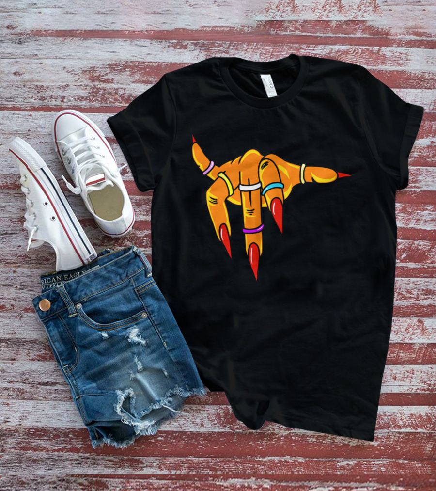 Neon Clawed Hand With Colored Rings Girl Gauntlet T-Shirt