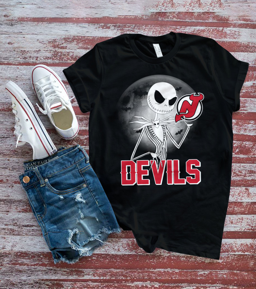 Jack Skellington Halloween Meets New Jersey Devils Moonlit Night T-Shirt