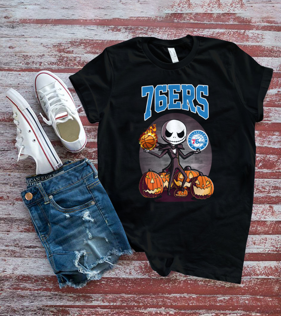 Philadelphia 76ers Jack Skellington Halloween Basketball Pumpkins T-Shirt