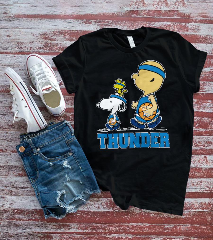 Snoopy And Oklahoma City Thunder Basketball Fans Walking With Woodstock T-Shirt