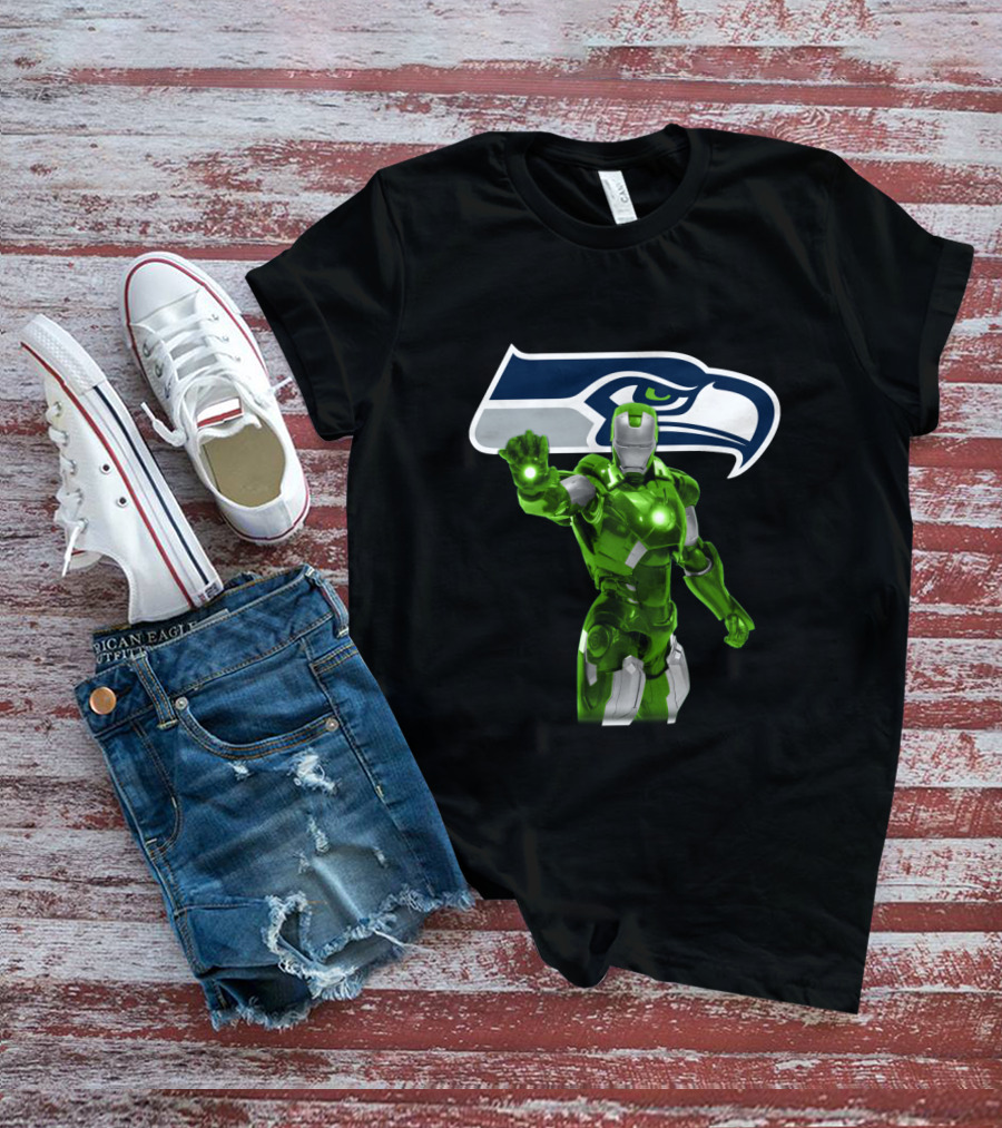 Iron Man Green Suit Seattle Seahawks Fans Marvel Crossover T-Shirt