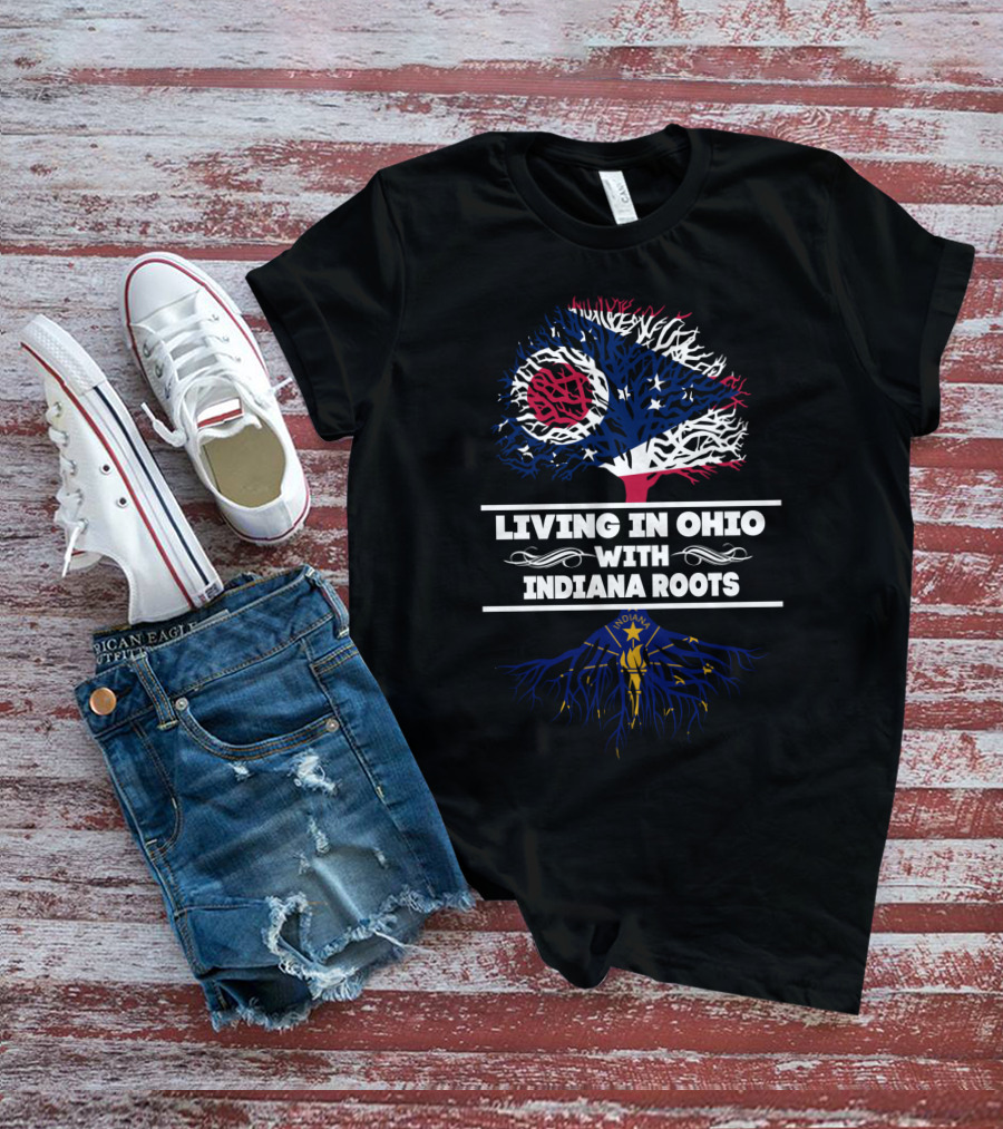 Ohio State Flag Tree With Indiana State Flag Roots Symbolizing Dual Heritage Connection T-Shirt