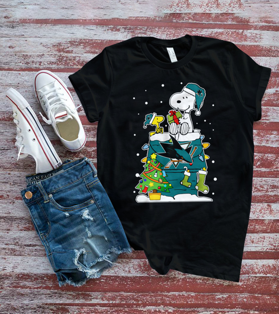 Snoopy And Woodstock Christmas With San Jose Sharks Hockey Spirit T-Shirt