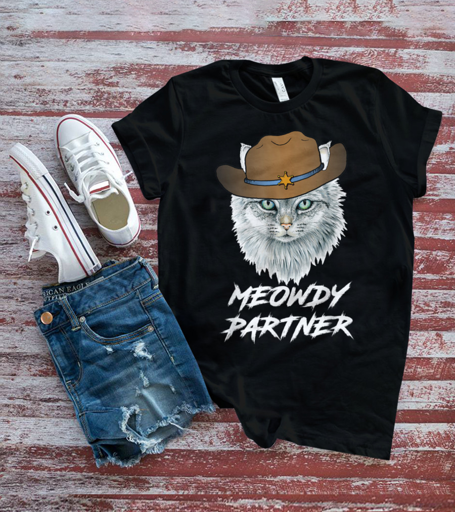 Meowdy Partner Cowboy Cat With Sheriff's Hat And Star Badge T-Shirt