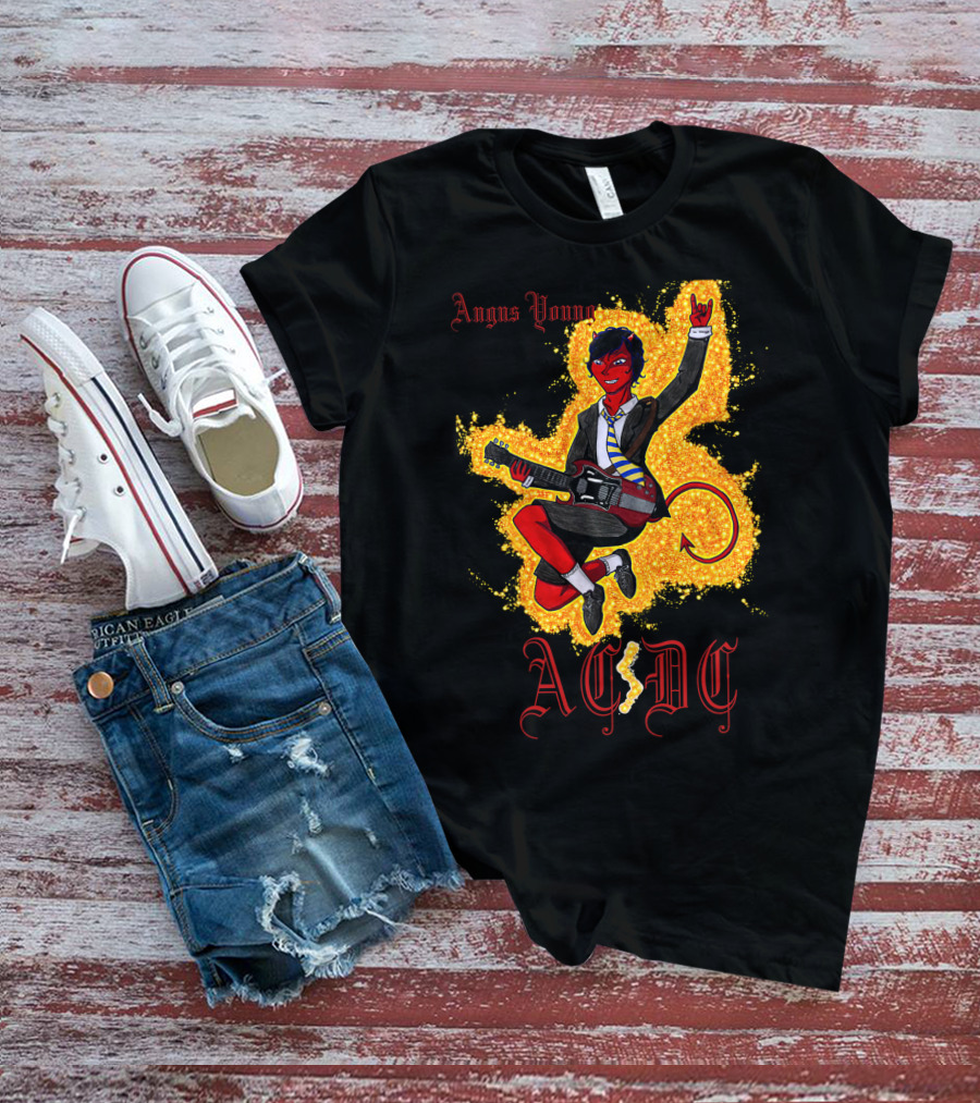 Acdc Angus Young Devil Rock Guitar Poster T-Shirt