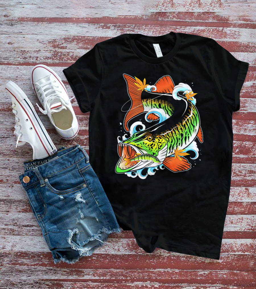 Angry Musky Fishing Splashing Leaves Dynamic T-Shirt