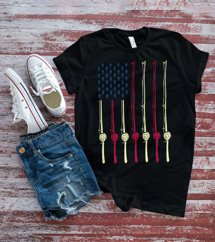 Fishing Poles American Flag Design For Fishing Lover T-Shirt