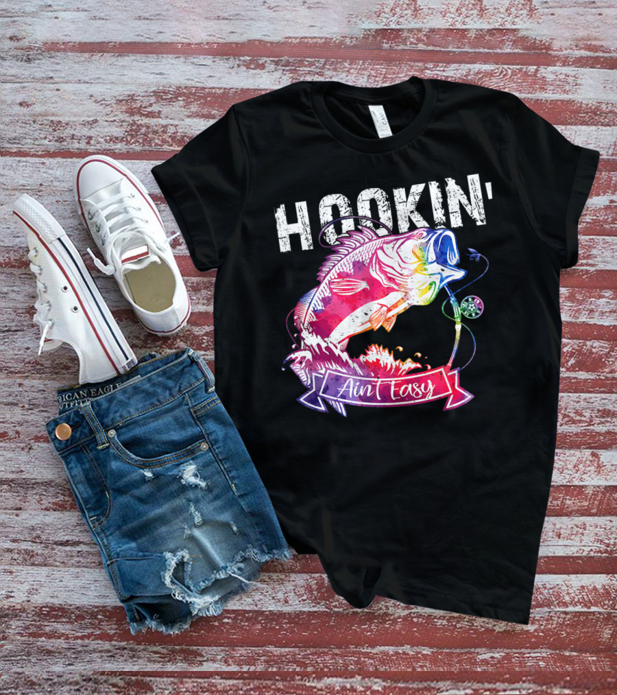 Hookin Aint Easy Funny Fishing Lovers Colorful Fish T-Shirt
