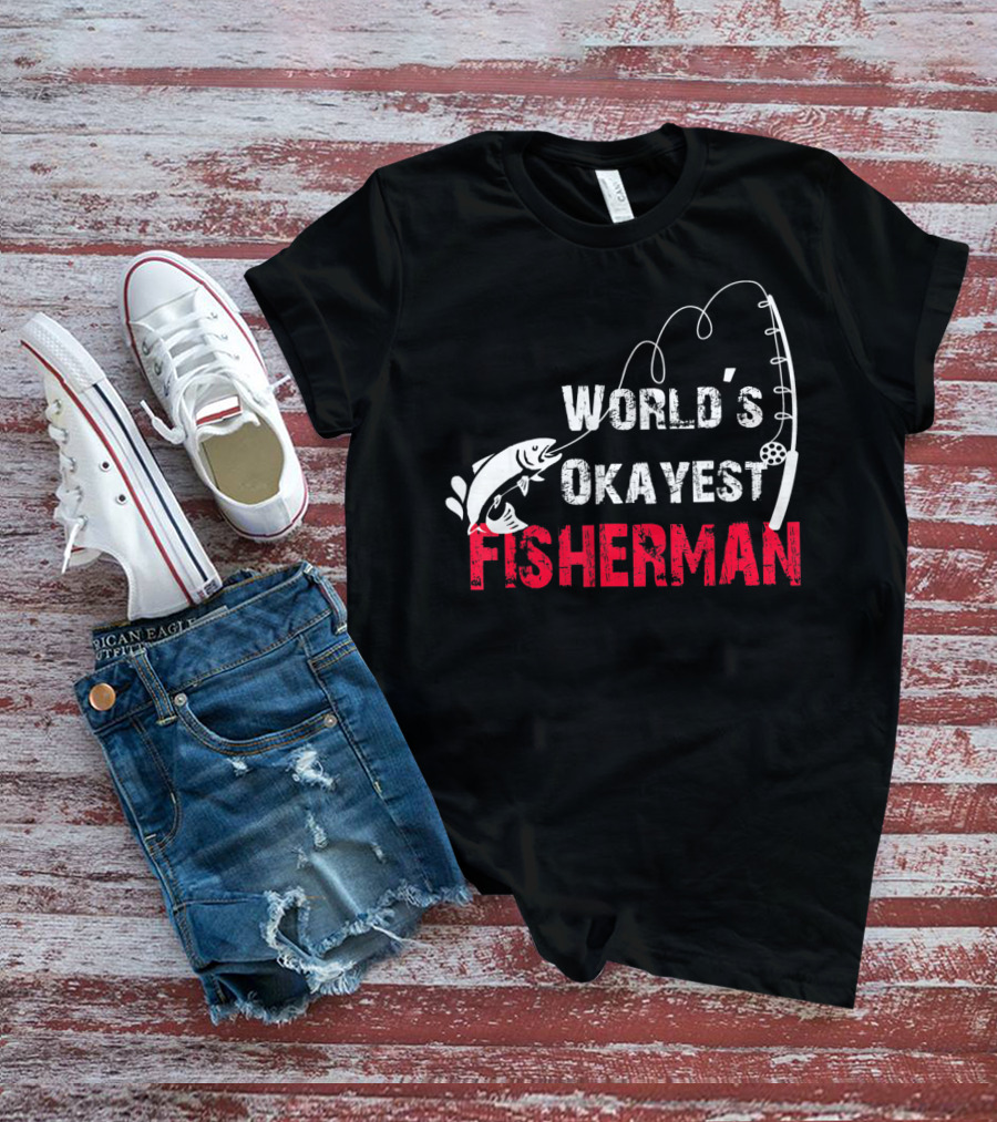 World's Okayest Fisherman Fishing Rod And Fish T-Shirt