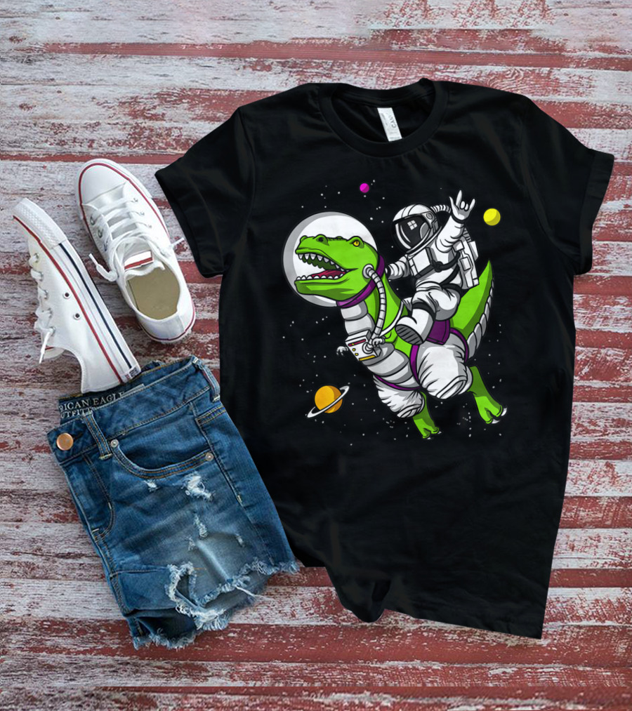 Astronaut Riding TRex Dinosaur In Outer Space With Planets T-Shirt