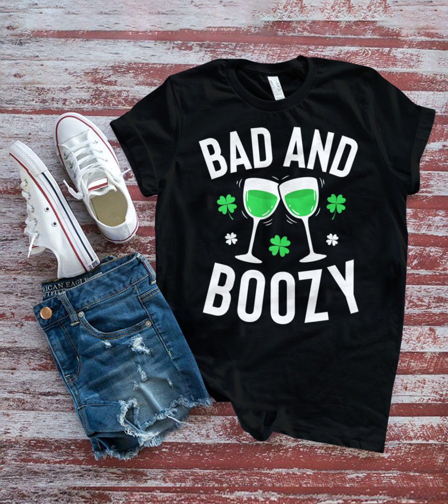Bad And Boozy St Patricks Day Clover Toasting Glasses T-Shirt