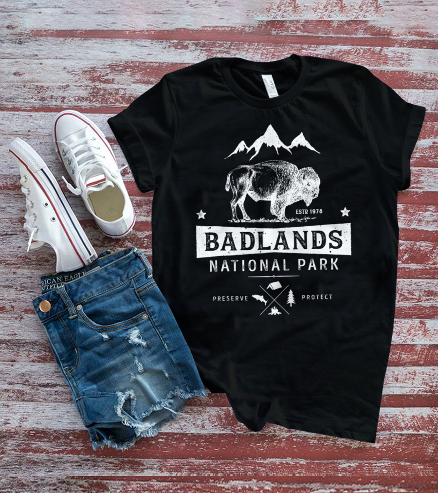 The Badlands National Park Vintage Buffalo Bison South Dakota Estp 1978 Preserve Protect Shirt offers a regular fit. Made from 100% ring-spun cotton that is pre-shrunk to help maintain size and shape after washing. Features reinforced construction details for durability. Available in U.S. standard sizes S-5XL to accommodate various body types.