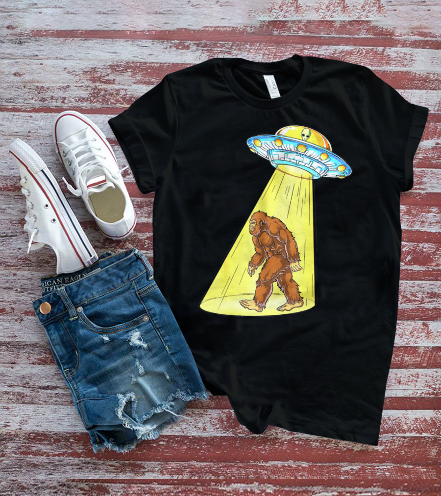 Bigfoot Sasquatch UFO Abduction Alien Flying Saucer T-Shirt