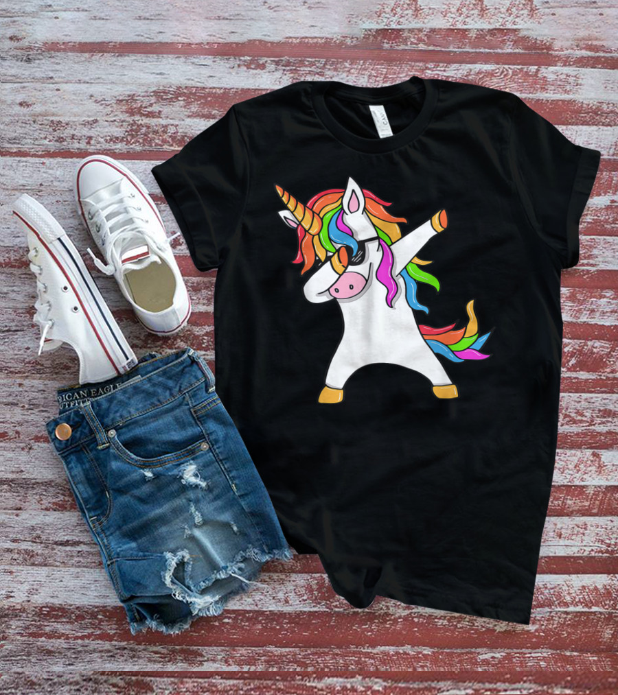 The Dabbing Unicorn Rainbow Hair Dab Pose Shirt offers a regular fit. Made from 100% ring-spun cotton that is pre-shrunk to help maintain size and shape after washing. Features reinforced construction details for durability. Available in U.S. standard sizes S-5XL to accommodate various body types.