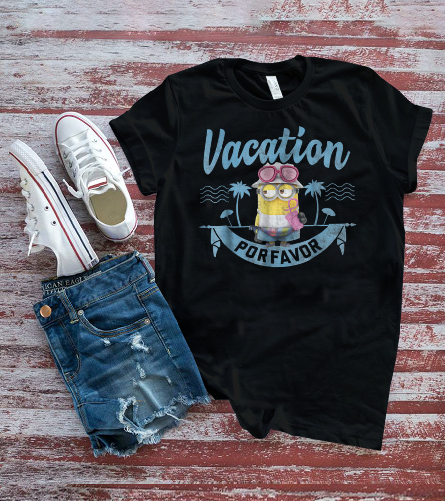 The Despicable Me Minions Vacation Por Favor Tropical Palm Beach Vibes Shirt offers a regular fit. Made from 100% ring-spun cotton that is pre-shrunk to help maintain size and shape after washing. Features reinforced construction details for durability. Available in U.S. standard sizes S-5XL to accommodate various body types.