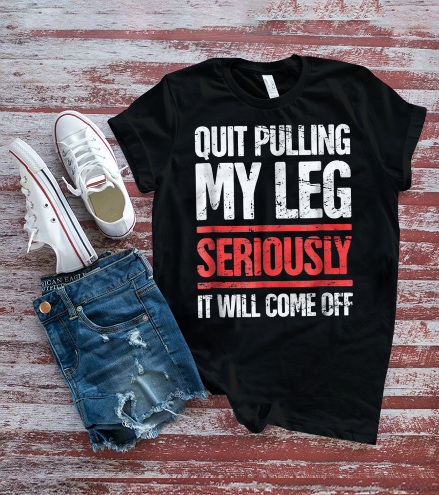 QUIT PULLING MY LEG SERIOUSLY IT WILL COME OFF Distressed Funny Present For Leg Amputee T-Shirt