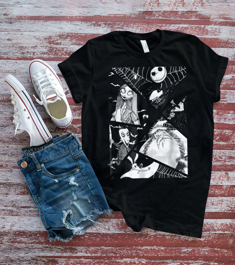 Disney Nightmare Before Christmas Story Jack Sally Zero Oogie Boogie Patchwork T-Shirt
