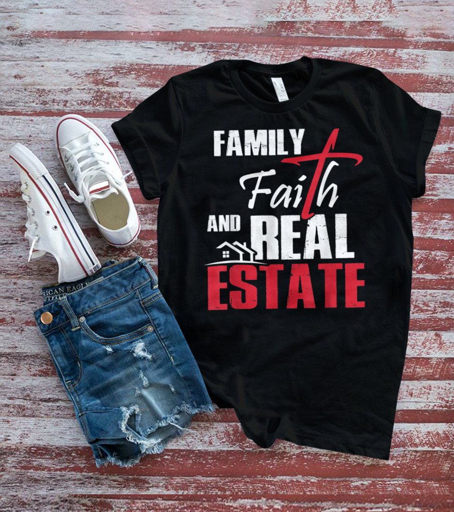 The Family Faith and Real Estate Realtor House Shirt offers a regular fit. Made from 100% ring-spun cotton that is pre-shrunk to help maintain size and shape after washing. Features reinforced construction details for durability. Available in U.S. standard sizes S-5XL to accommodate various body types.