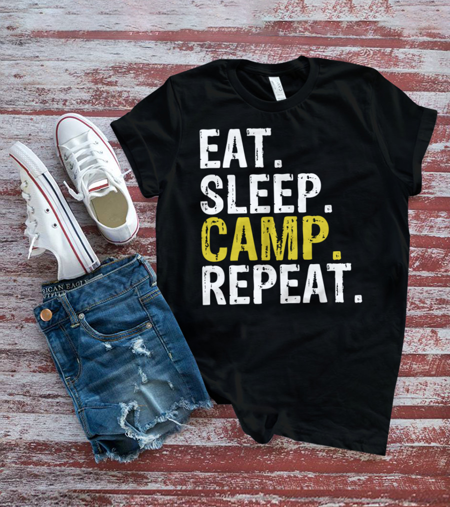 The Eat Sleep Camp Repeat Camping Shirt offers a regular fit. Made from 100% ring-spun cotton that is pre-shrunk to help maintain size and shape after washing. Features reinforced construction details for durability. Available in U.S. standard sizes S-5XL to accommodate various body types.