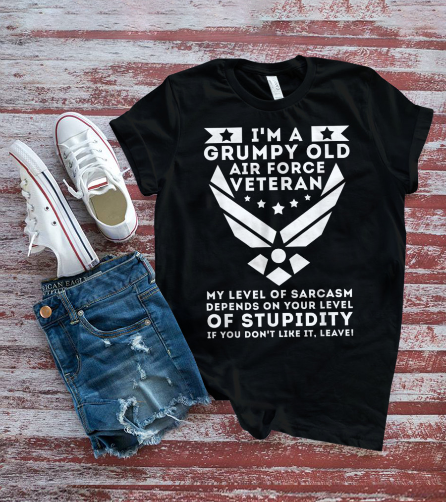 I'm A Grumpy Old Air Force Veteran My Level Of Sarcasm Depends On Your Level Of Stupidity If You Don't Like It, Leave T-Shirt