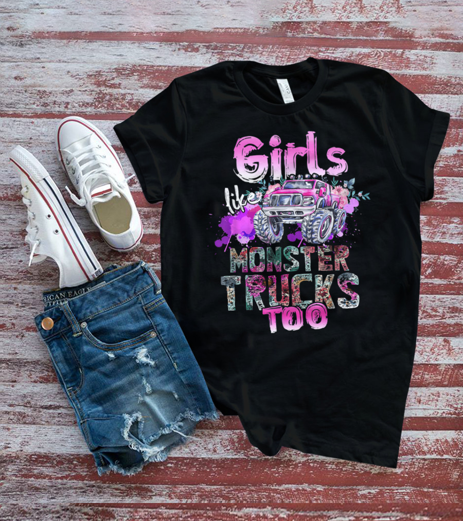 The Girls Like Monster Trucks Too Colorful Floral Paint Splash Truck Shirt offers a regular fit. Made from 100% ring-spun cotton that is pre-shrunk to help maintain size and shape after washing. Features reinforced construction details for durability. Available in U.S. standard sizes S-5XL to accommodate various body types.