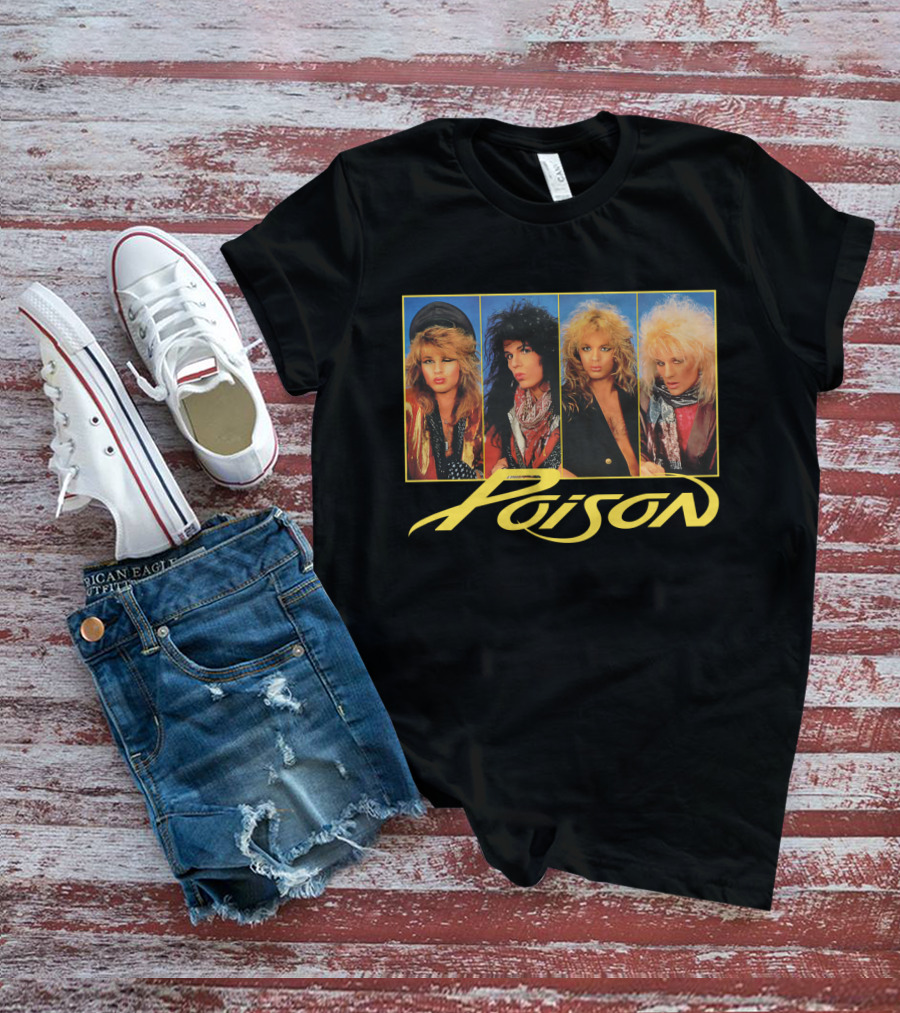The Poison Band Members 80S Glam Metal Shirt offers a regular fit. Made from 100% ring-spun cotton that is pre-shrunk to help maintain size and shape after washing. Features reinforced construction details for durability. Available in U.S. standard sizes S-5XL to accommodate various body types.