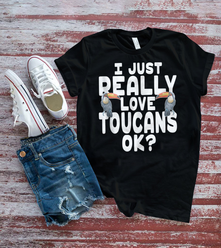 The I Just Really Love Toucans Ok? Shirt offers a regular fit. Made from 100% ring-spun cotton that is pre-shrunk to help maintain size and shape after washing. Features reinforced construction details for durability. Available in U.S. standard sizes S-5XL to accommodate various body types.