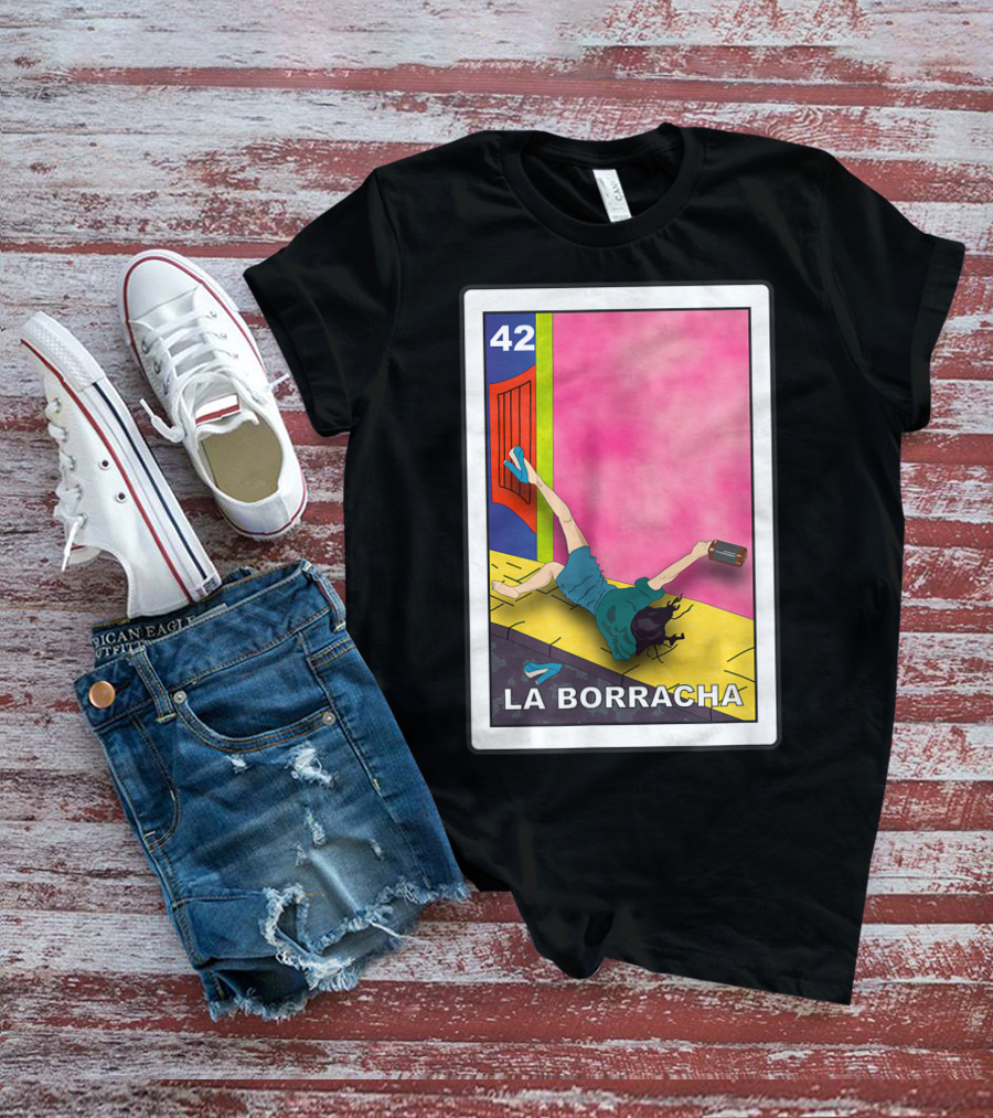 La Borracha Loteria Mexican Lottery Card 42 Bright Pink Background T-Shirt