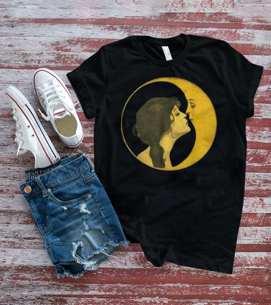 The Kiss the Man On The Moon Vintage Celestial Shirt offers a regular fit. Made from 100% ring-spun cotton that is pre-shrunk to help maintain size and shape after washing. Features reinforced construction details for durability. Available in U.S. standard sizes S-5XL to accommodate various body types.