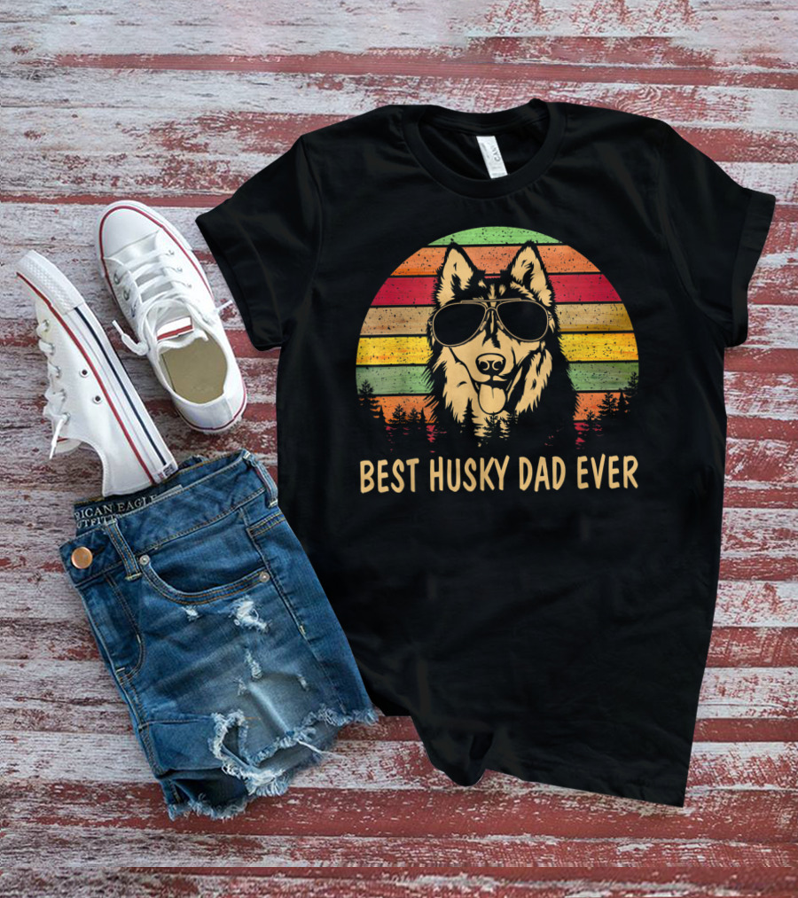 The Best Husky Dad Ever Father's Day Men's Retro Sunglasses Dog Shirt offers a regular fit. Made from 100% ring-spun cotton that is pre-shrunk to help maintain size and shape after washing. Features reinforced construction details for durability. Available in U.S. standard sizes S-5XL to accommodate various body types.