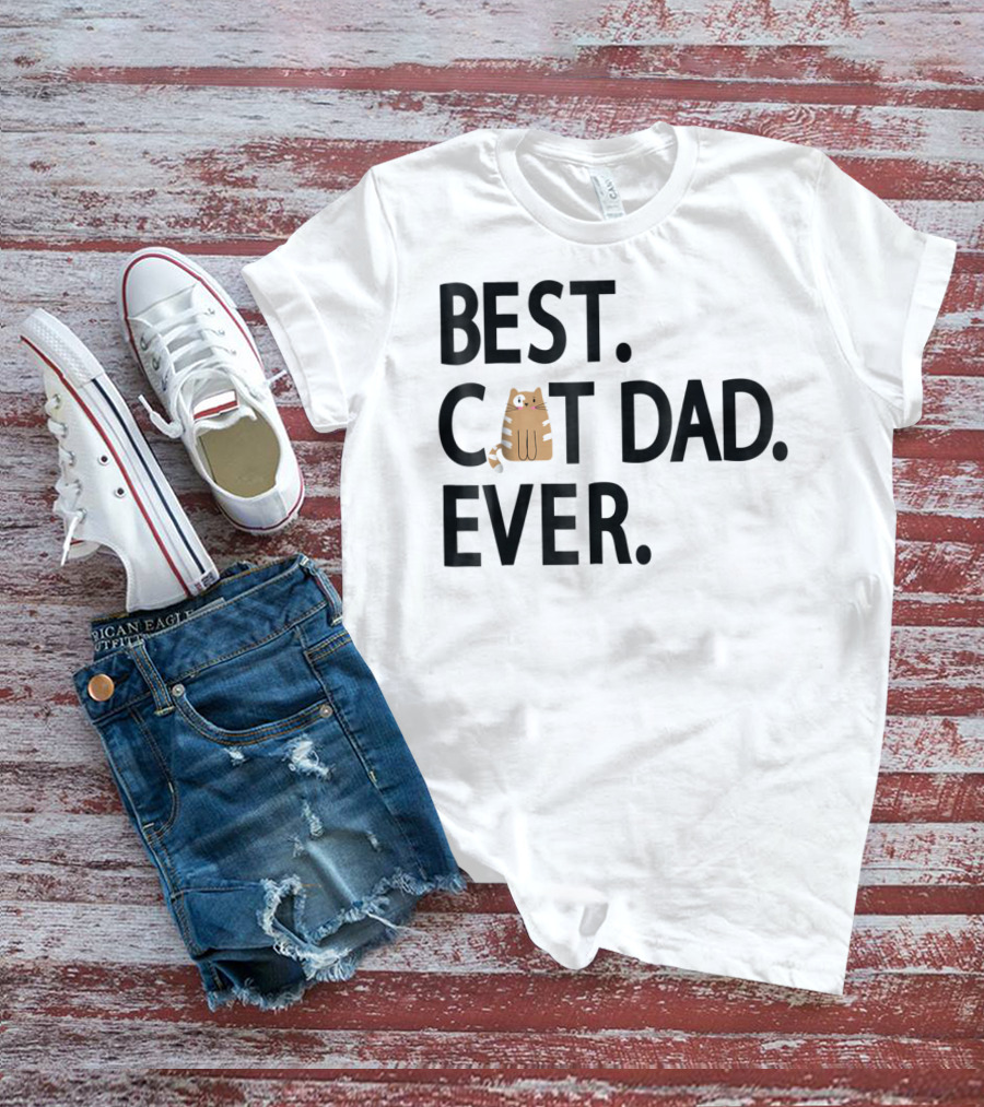 Best Cat Dad Ever Cute Funny Novelty Shirt With Adorable Cat Image T-Shirt