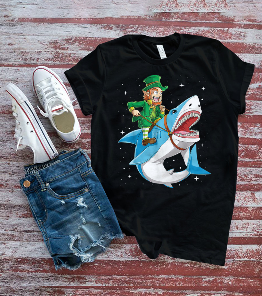 The Leprechaun on Great White Shark with Starry Background Shirt offers a regular fit. Made from 100% ring-spun cotton that is pre-shrunk to help maintain size and shape after washing. Features reinforced construction details for durability. Available in U.S. standard sizes S-5XL to accommodate various body types.