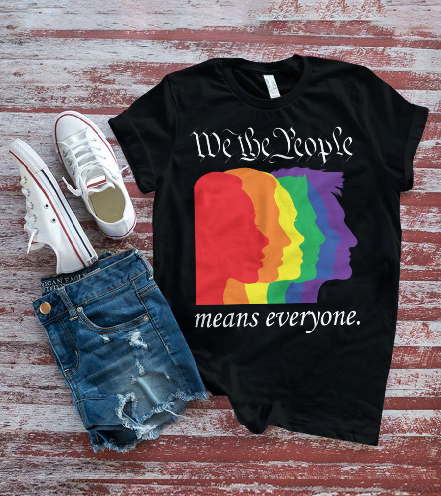 The We the People Means Everyone Rainbow Shirt offers a regular fit. Made from 100% ring-spun cotton that is pre-shrunk to help maintain size and shape after washing. Features reinforced construction details for durability. Available in U.S. standard sizes S-5XL to accommodate various body types.