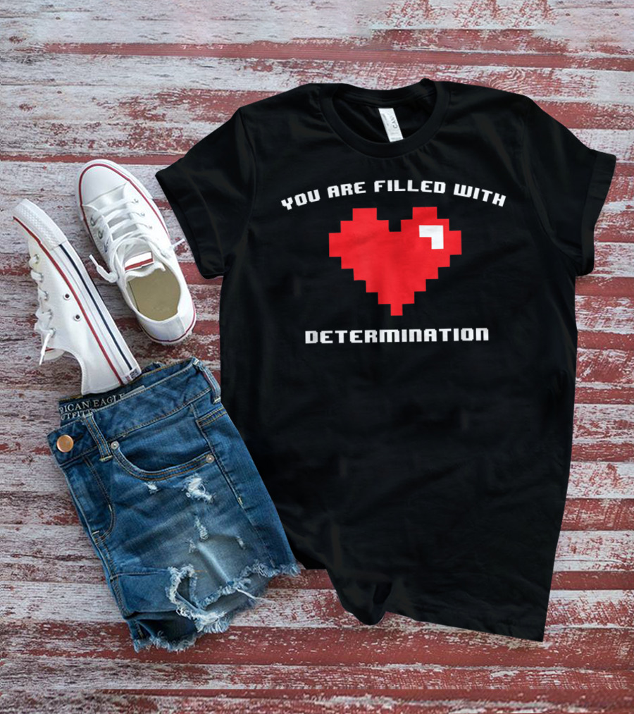 You Are Filled With Determination Pixel Heart Gaming Motivation T-Shirt