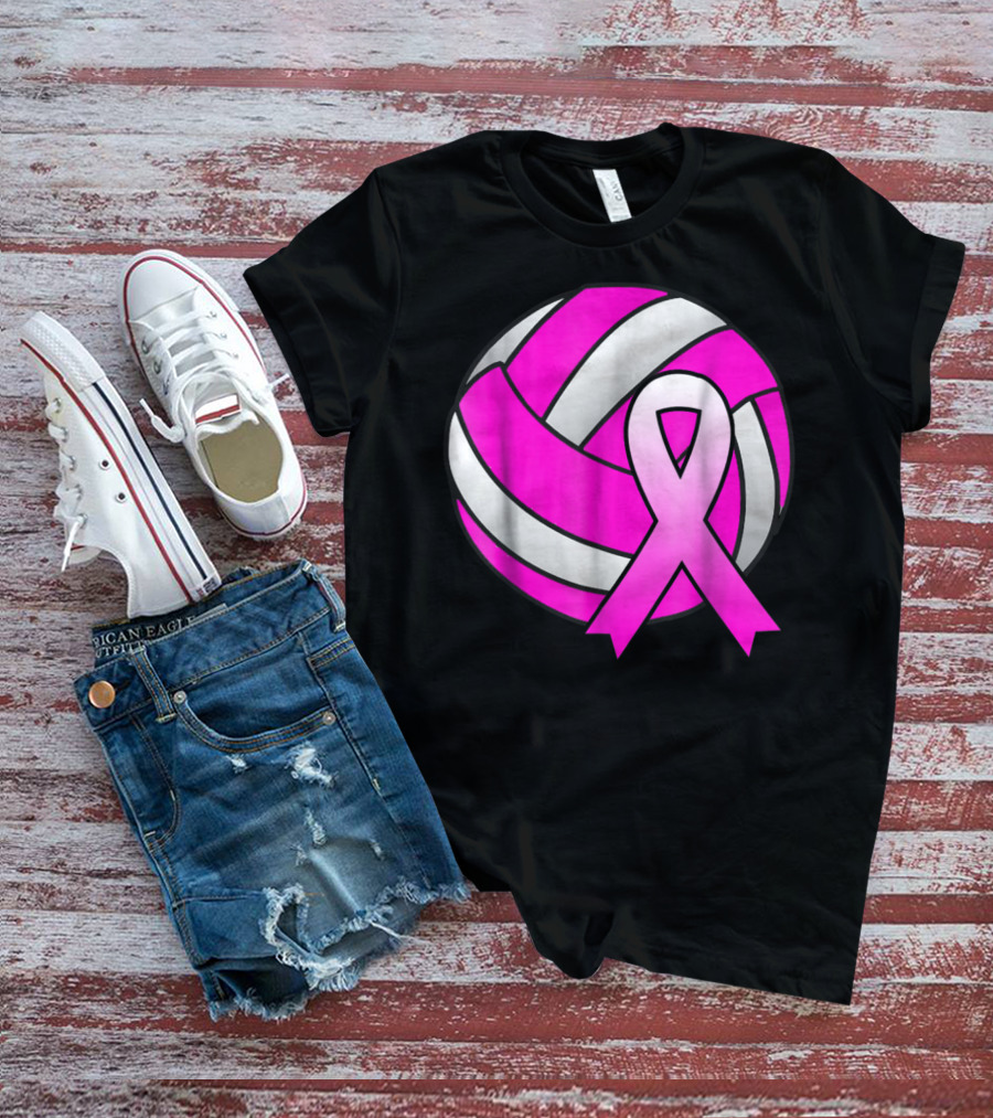 Volleyball Pink Ribbon Breast Cancer Awareness Symbol On Ball T-Shirt