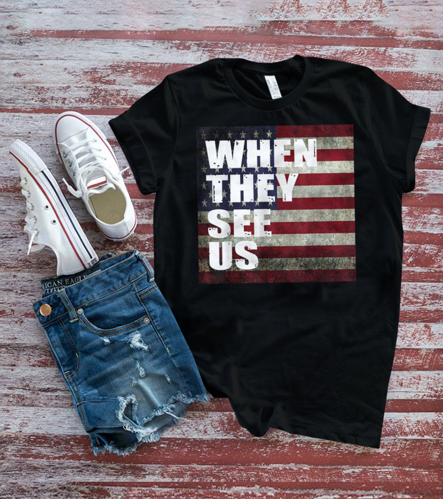 The WHEN THEY SEE US American Flag Shirt offers a regular fit. Made from 100% ring-spun cotton that is pre-shrunk to help maintain size and shape after washing. Features reinforced construction details for durability. Available in U.S. standard sizes S-5XL to accommodate various body types.