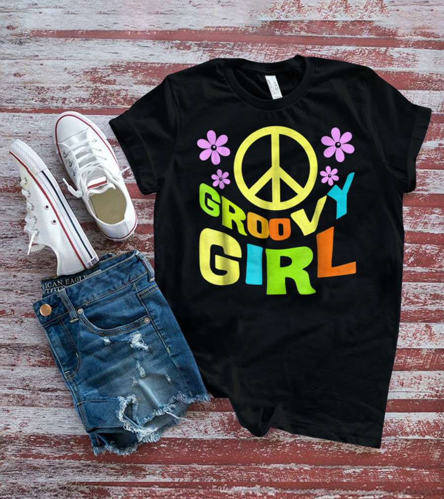 Groovy Girl 60s 70s Peace Sign Flower Power Costume Party Wear T-Shirt