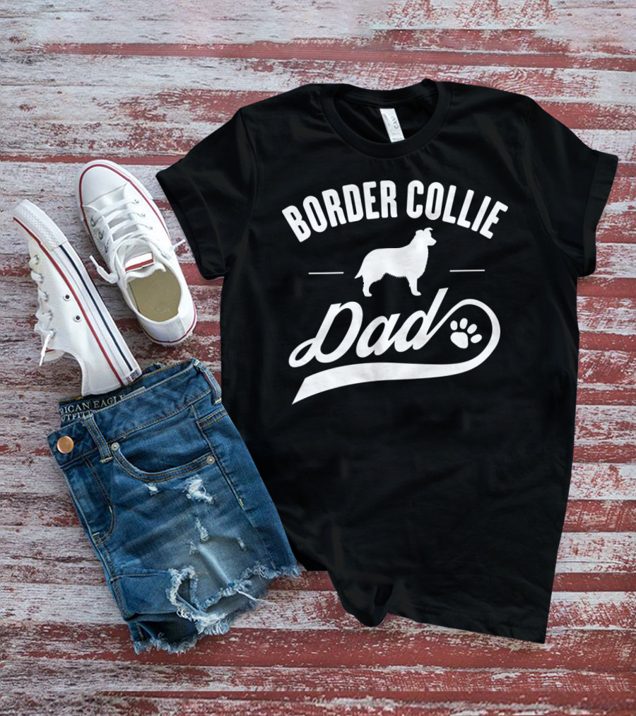 Border Collie Dad Dog Owner Lover Paw Prints T-Shirt