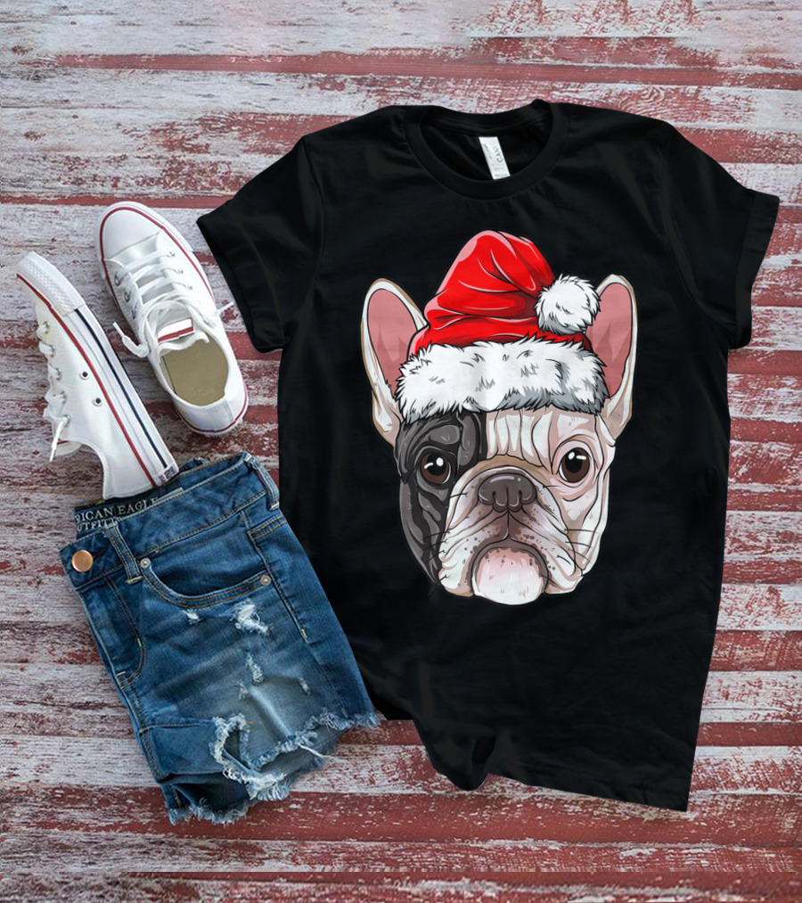 French Bulldog Wearing Santa Hat T-Shirt