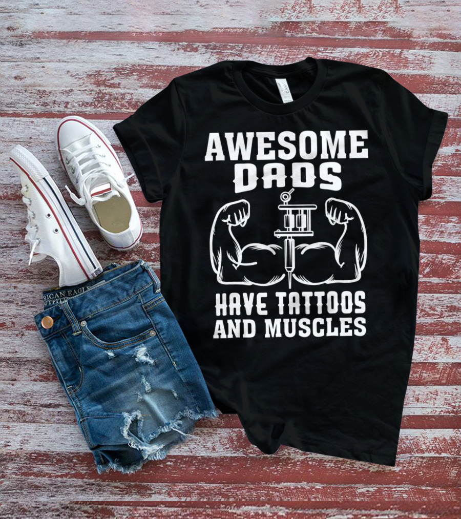 Awesome Dads Flexing Muscles And Tattoos Humor T-Shirt