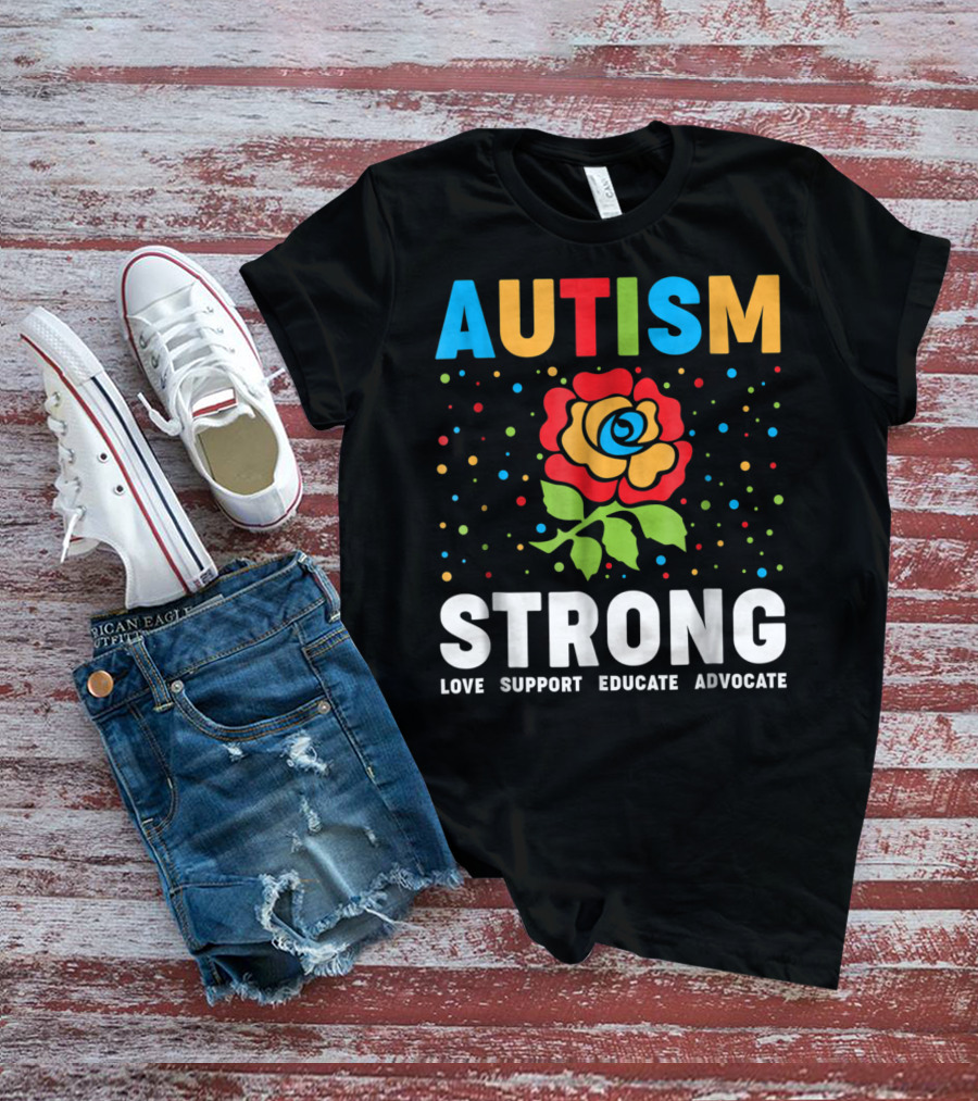 Autism Strong Love Support Educate Advocate Flower T-Shirt