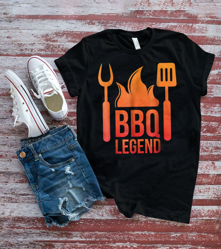 BBQ Legend Vintage Hot Barbecue Grill Grilling Dad Flame Fork Spatula T-Shirt