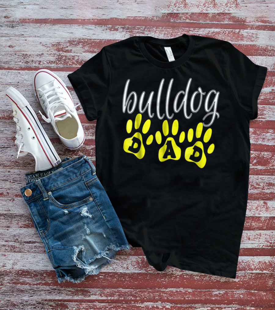 Bulldog Dad Paw Print Cute Puppy Lover T-Shirt