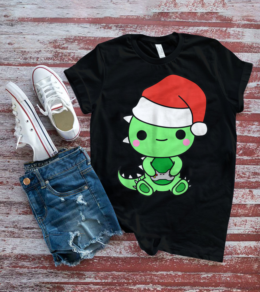 Christmas Gaming Dinosaur Santa Gamer Nerd T-Shirt