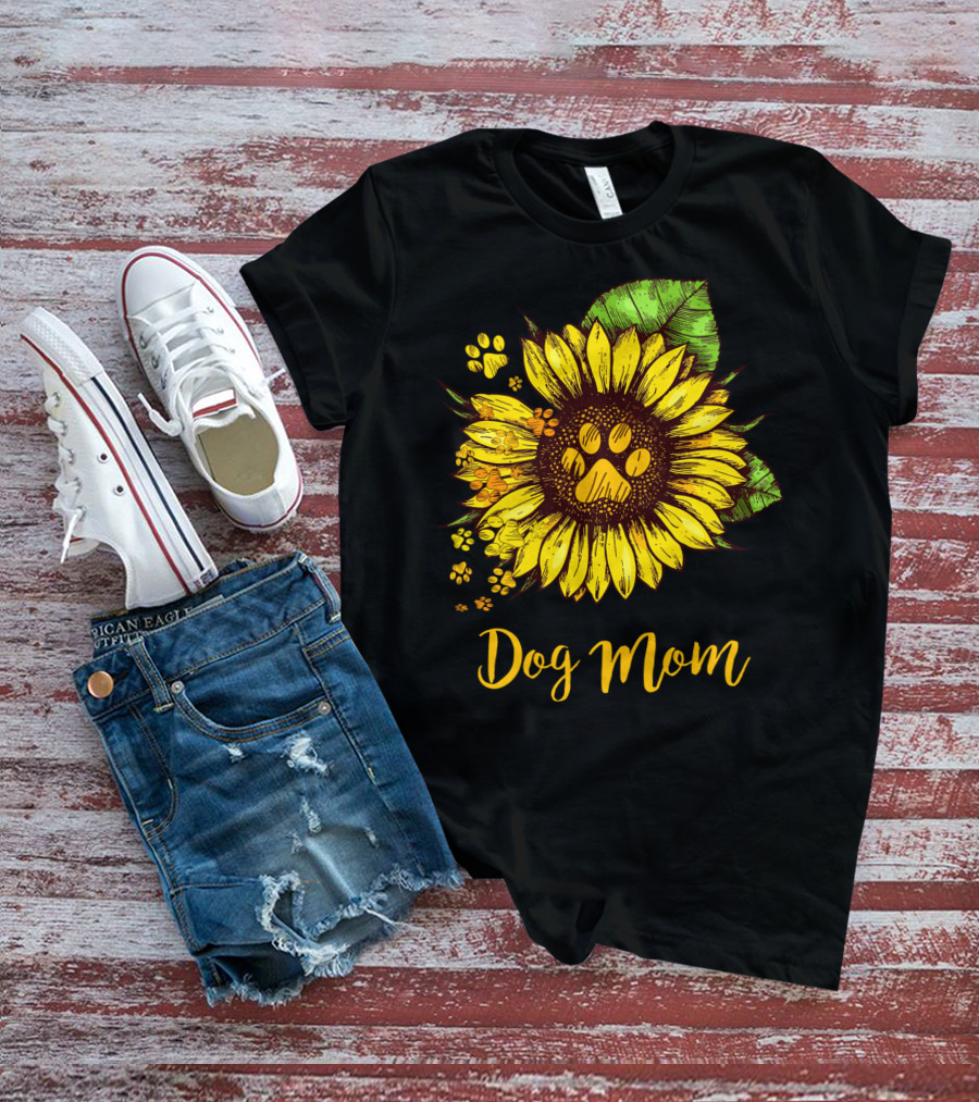 Dog Mom Sunflower With Dog Paw Prints T-Shirt