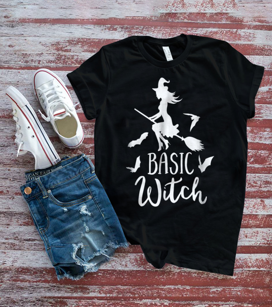 Basic Witch Halloween Wife Mom Teacher Bat Broom Battling Witch T-Shirt