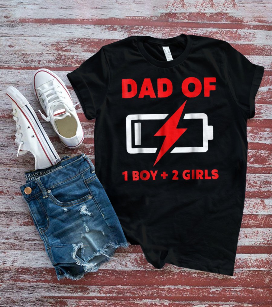 Dad Of 1 Boy 2 Girls Low Battery Symbol Father's Day T-Shirt